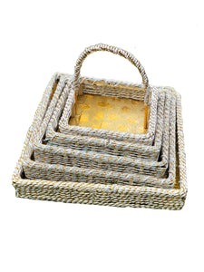 White and Gold Round nest of 5 Hamper Gifting Baskets with option for Handles