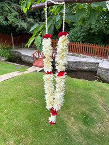 Faux red velvet rose and white flower lei garland mala haar milni hajj umrah wedding party bride groom haar